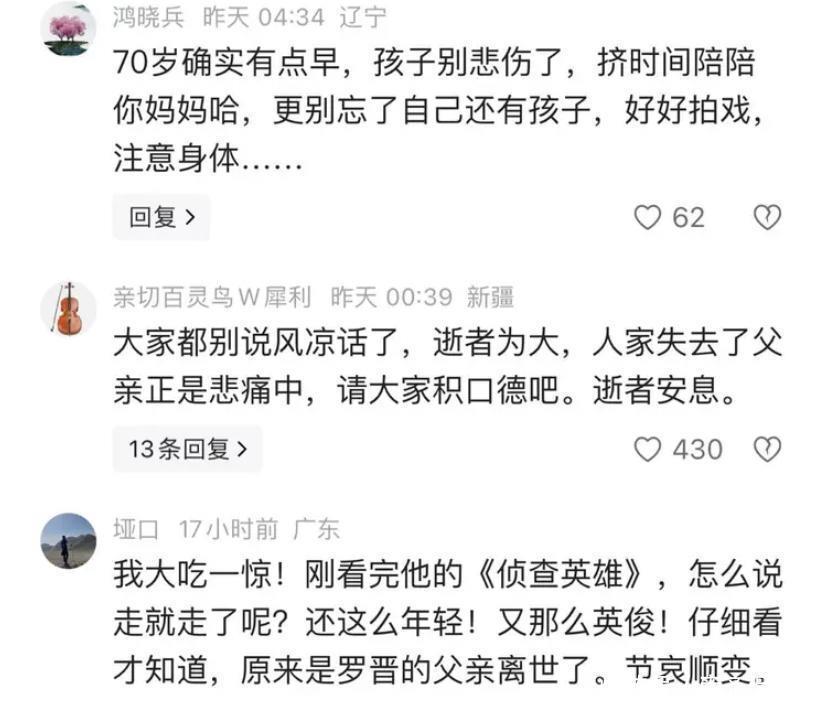 这起事件更像一面镜子,照出了娱乐圈的浮躁与功利。当罗晋在医院彻夜陪护时,有人在编造婚姻闹剧;当他强忍悲痛履行工作责任时,有人在炒作“事业危机”。反观有些艺人,把“尽孝”当成流量密码,嘴上喊着深情承诺,关键时刻却销声匿迹,对比之下,罗晋的沉默更显珍贵。他没有发长文辩解,没有晒恩爱反击,只是默默做好该做的事,这份低调与体面,正是家风最好的传承。其实罗晋的选择,从来不是偶然。作为中国煤矿文工团的体制内演员,19年来他始终坚守“单位任务优先”的准则,哪怕陪护父亲,也从未耽误本职工作,这种“两点一线”的生活轨迹,藏着对职业的敬畏,更藏着对家庭的责任。在这个流量至上的时代,太多人把曝光度当成唯一追求,可罗晋用行动证明,真正的演员,拼的不是话题度,而是人品与担当。网友的反应也让人暖心,有人安慰“节哀顺变,多陪陪母亲”,有人感慨“刚看完他的剧,没想到背后这么辛苦”,后援会更是取消了生日庆祝活动,倡导“不打扰、不窥探”。这份理性与善意,恰恰说明公众早已厌倦了虚假的人设,更愿意为真实的担当买单。
