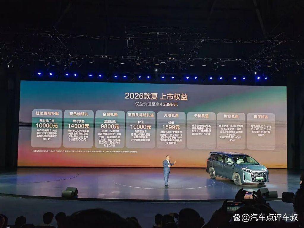2025年11月4日,2026款夏携四款配置车型震撼上市,官方指导价为20.68-26.98万元。配合超级置换补贴,限时售价进一步下探至19.68-25.98万元,在保持大空间与舒适性优势的基础上,对纯电续航、智能驾驶与安全配置进行了全面升级,展现出挑战传统豪强的强大实力。