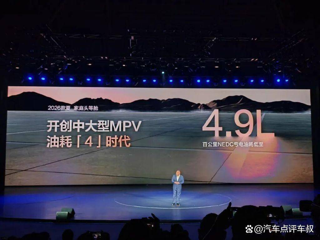 能耗表现同样出色,百公里亏电油耗进一步降低至4.9L,开创中大型MPV的油耗4时代。在满油满电状态下,综合续航最高可达1163公里,实现从北京到上海的单程旅行无需中途补给。