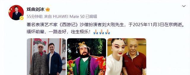 从照片中可以看到,著名表演艺术家马金凤的徒弟刘冰发文悼念,他表示其实在3号的时候,刘大刚老师就已经在北京去世了。