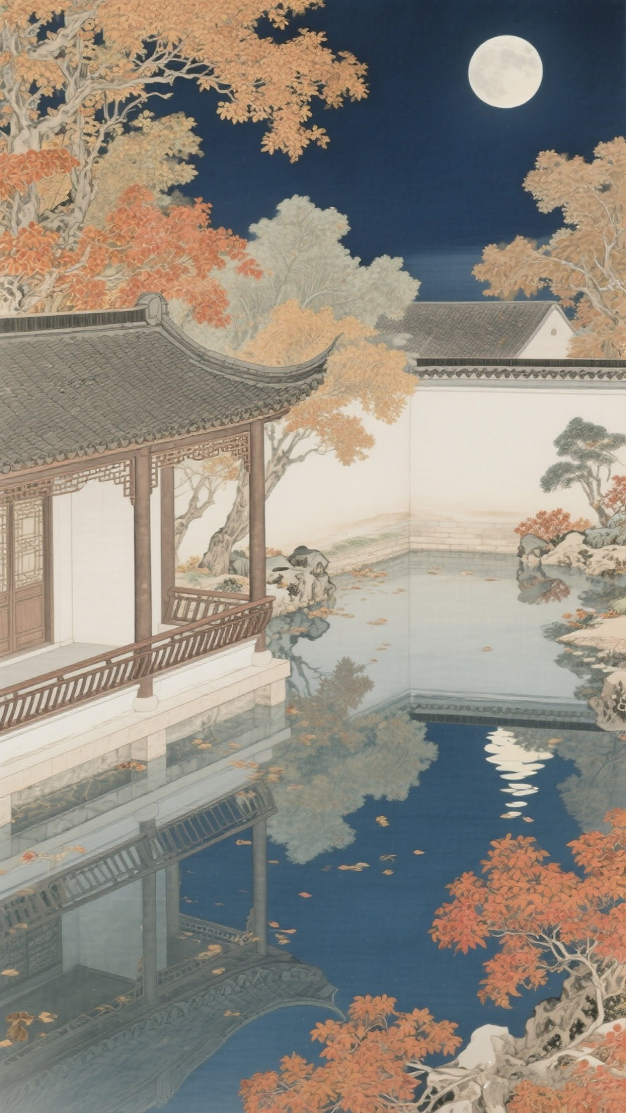 当蝉声歇去,水波不兴,那些被日常喧嚣掩盖的心绪才会如此分明地浮现。诗人独倚栏杆的身影,在“永怀当此节,倚立自移时”中定格。时间在衣袂间静静流淌,思念却逆流而上,回溯到某个值得永远珍藏的时光。