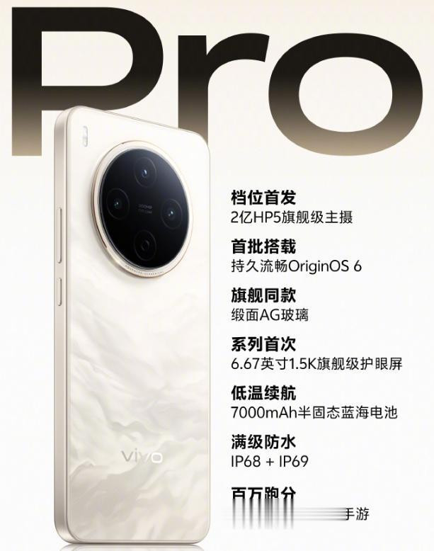 内置7000mAh蓝海电池,容量倒是没有标准版那么大,不过这个水平大概足够一天使用,机身仍然支持IP68/IP69顶级防水,外围上也会有双扬声器、NFC、屏幕指纹等功能,采用最新的Origin OS 6操作系统。